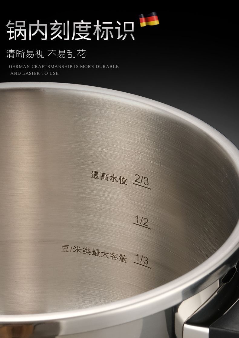 德国高压锅家用304不锈钢加厚防爆压力锅大容量电磁炉通用食品级