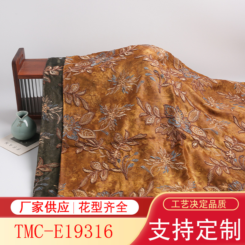 全人丝印花绣花面料盘带刺绣布料新中工老钱风