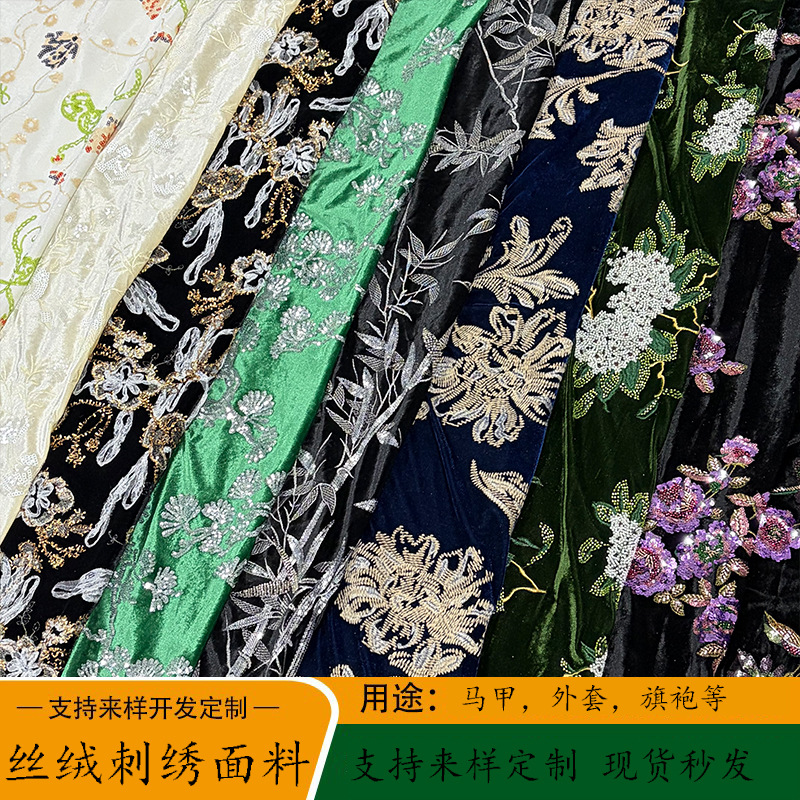 新中国風ベルベット刺繍生地チャイナドレス女装生地現物供給