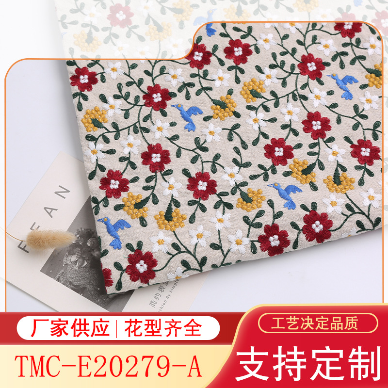2022春夏新作田園風刺繍竹節綿布刺繍レディースワンピースバッグ生地