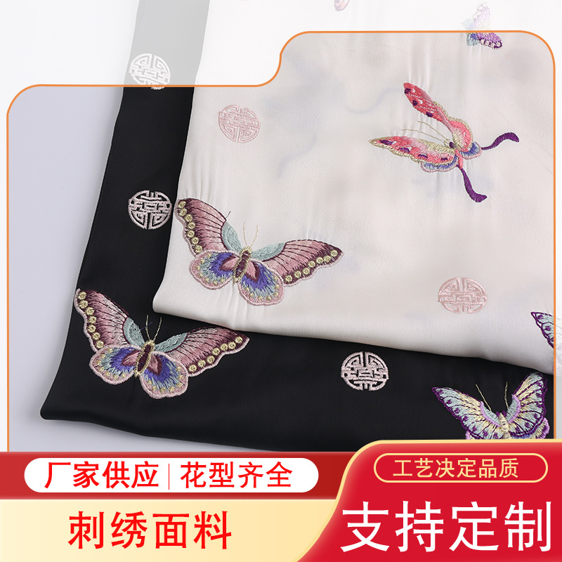 酢酸麻シルクサテン刺繍生地国風蝶刺繍生地