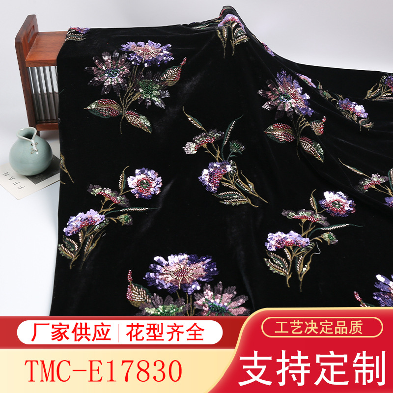 国潮人丝丝绒亮片刺绣布料新中式秋布料