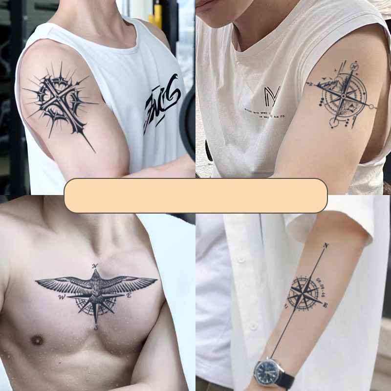 花胸草本タトゥーステッカー防水男持続胸前花腕胸元半永久高级感アルファベット文芸