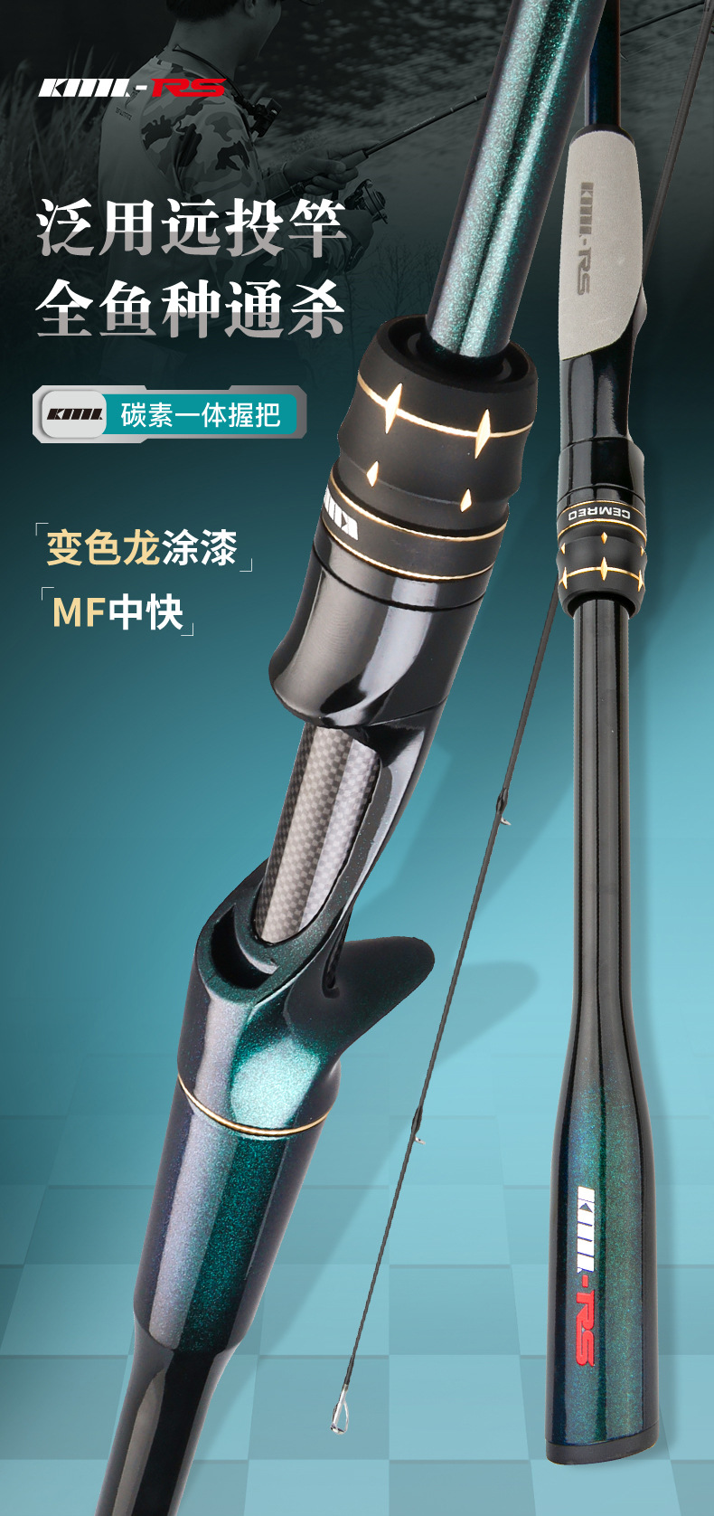 科迈雷翎刺全水域远投泛用路滑机械发声M调碳素轻量路亚竿抛海竿