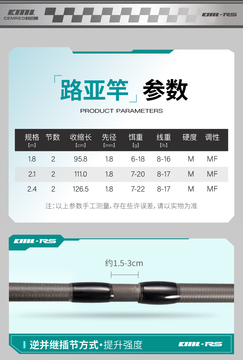 コマイレ越境RS多節携帯旅行用炭素ML調釣竿路亜竿卸売り威海漁具卸売り