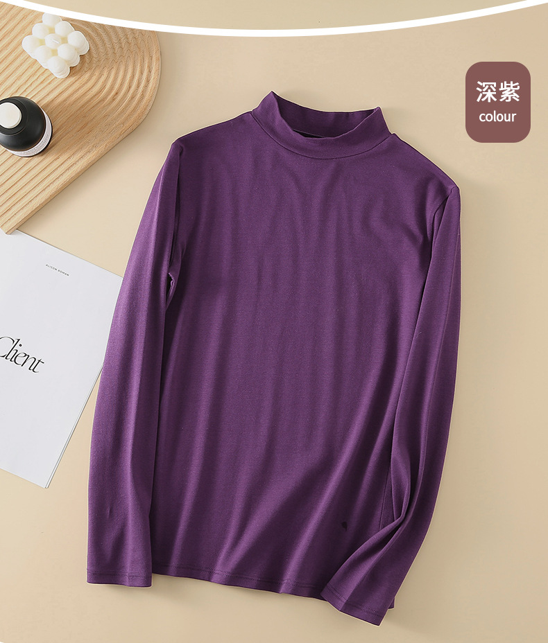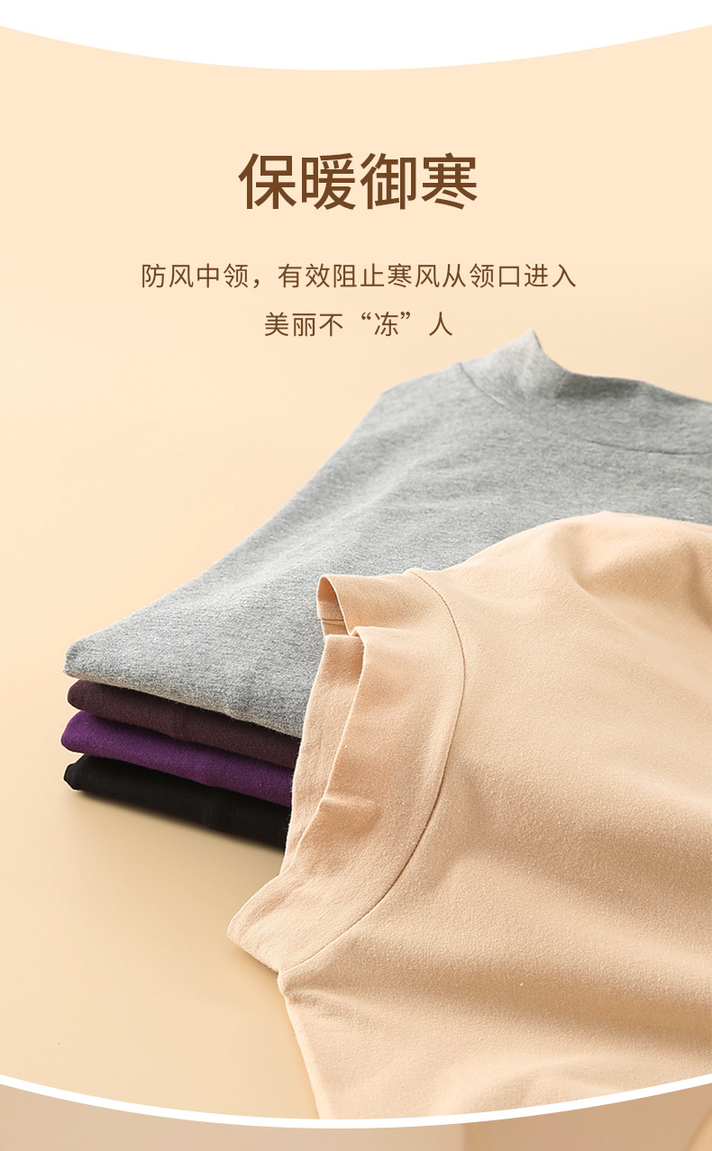 纯棉中领打底衫女士秋冬款单件上衣纯色保温秋衣保暖工厂现货批发