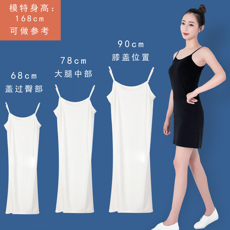 モーダルのサスペンダースカートの女性の薄いタイプの底を打つワンピースの中に防透のスカートを掛けて身を修めます。