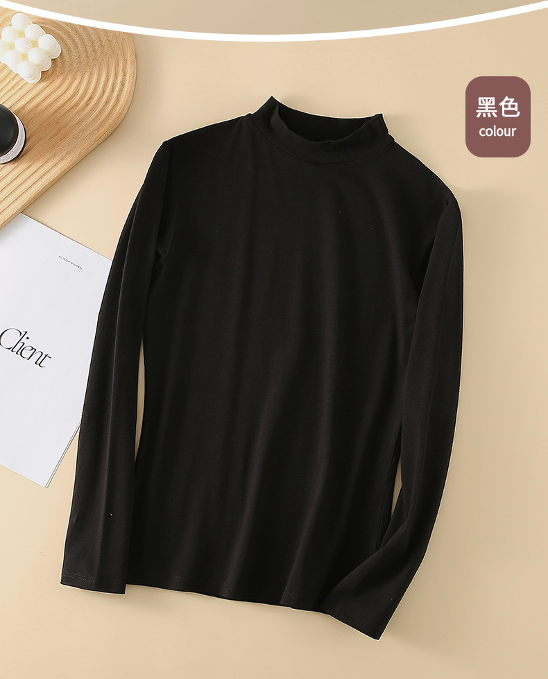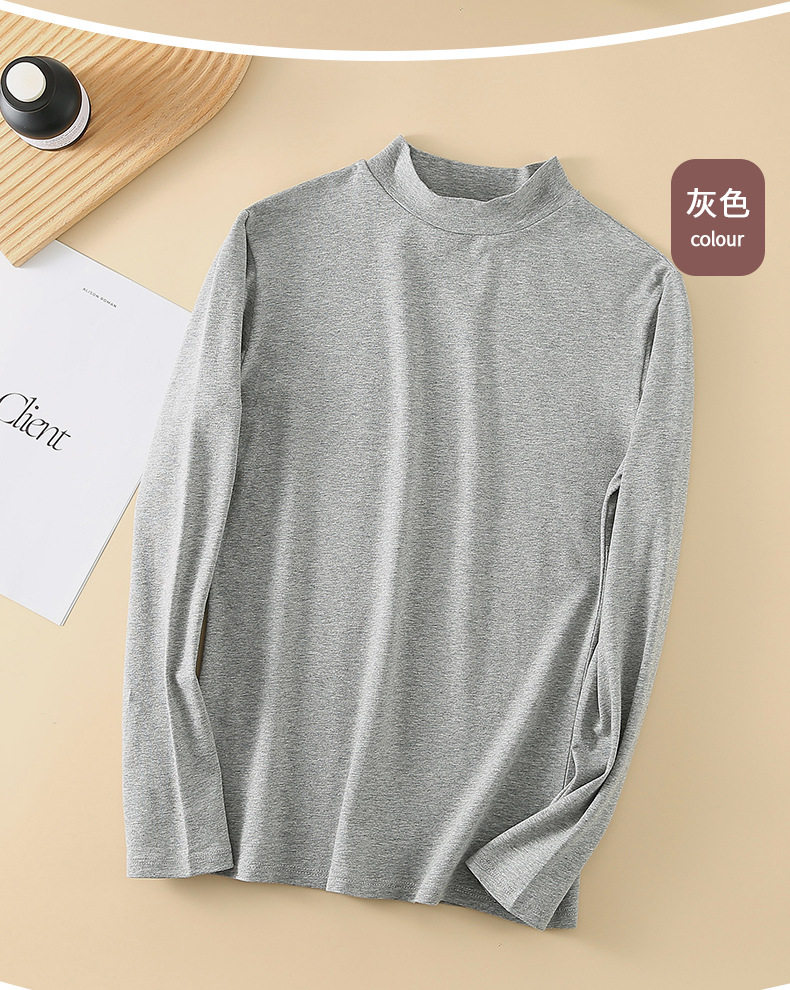 女性の半高襟秋衣一枚の上着の綿のセーターの純綿の薄いシャツの保温下着の長袖の秋冬