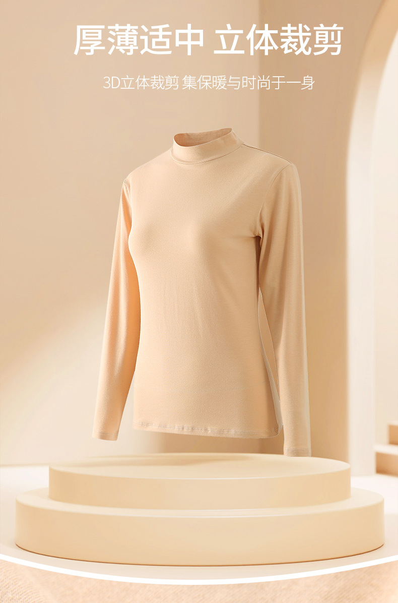 纯棉舒绒秋衣打底衫女士秋冬半高领内搭单件保暖内衣全棉毛衫发热