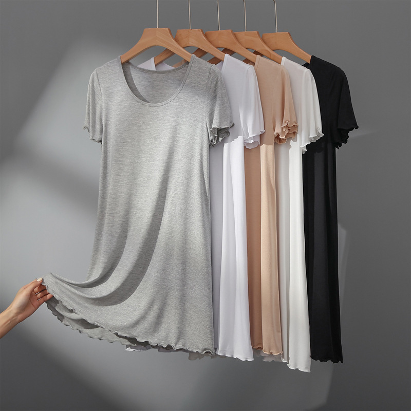 夏のモーダルパジャマ女性のゆったりした大きいサイズの半袖のパジャマの薄いタイプの長い家庭服はワンピースを着ることができます。