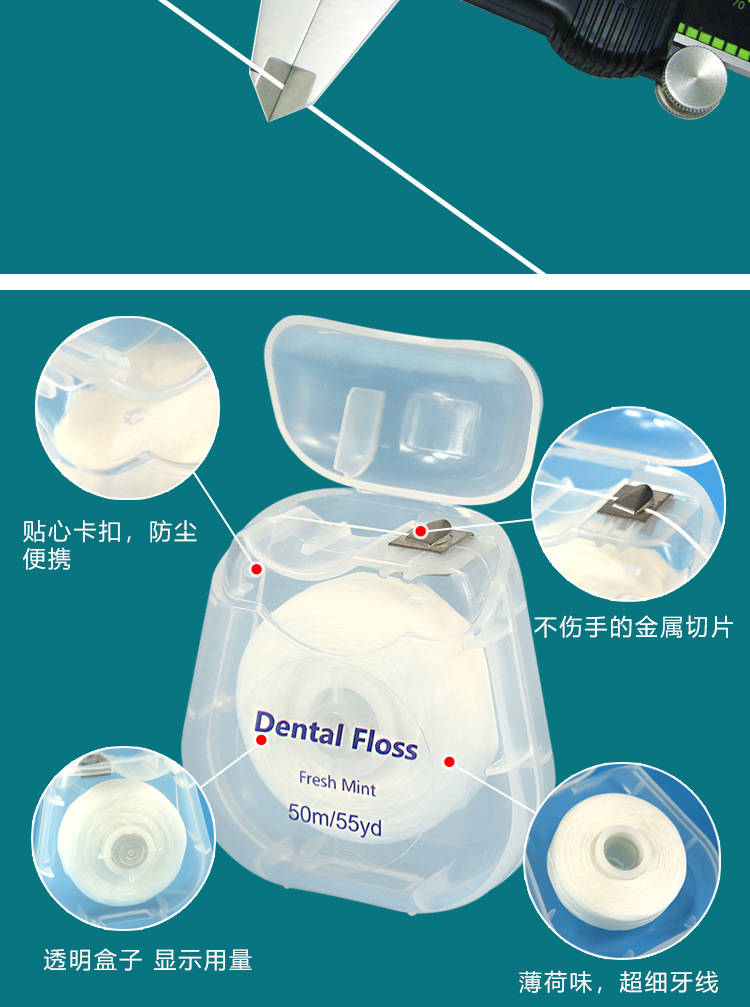 メーカー直販巻歯線50m英語丸箱超細い滑り歯線ミント味携帯現物卸売り