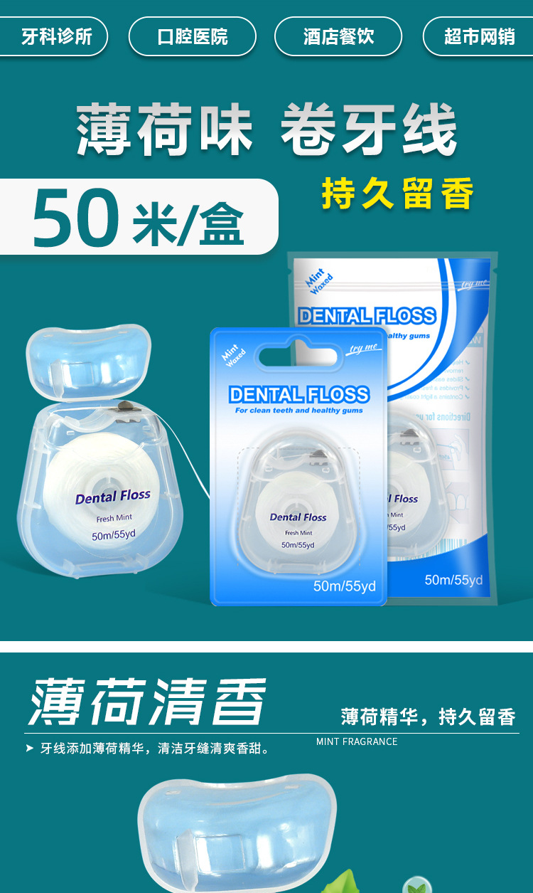 国境を越えた卸売りのフロス巻き50メートルミント味floss矯正巻のフロス口腔クリーナースポット卸売り