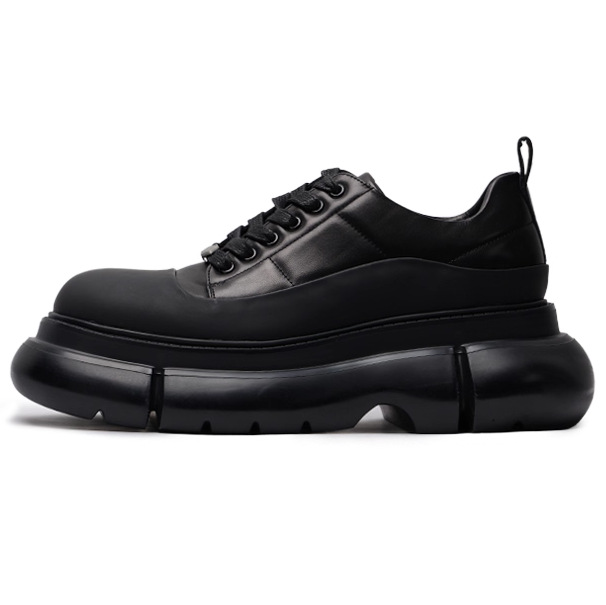 無地のクラシックダービーシューズ メンズ パリ風ミッキー ラージトゥ イギリス風カジュアルレザーシューズ 厚底 ハイカット ブラック マット仕上げ 多用途