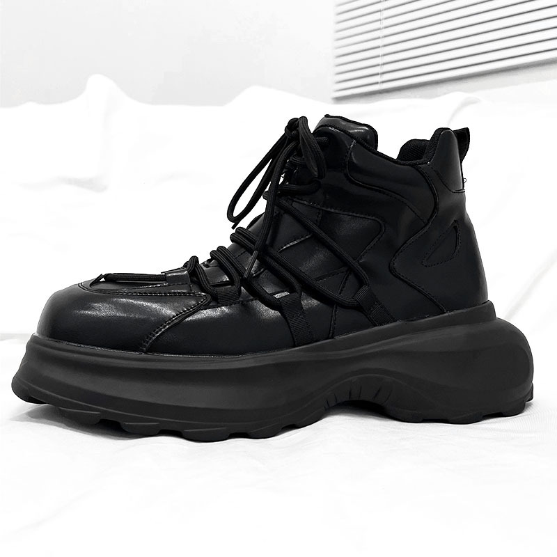 黒武士の高組のお父さんの靴の男の小さい衆の厚い底は高くなって運動靴の英倫の牛革のショートブーツの高い街の風のマーティンの靴を上げます。