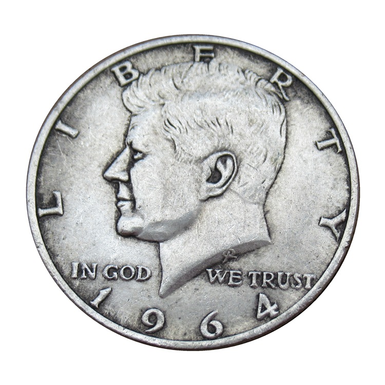 アンティーク工芸品 アメリカ半ドル ケネディ 1964年 銅銀メッキ 外国貿易記念コイン