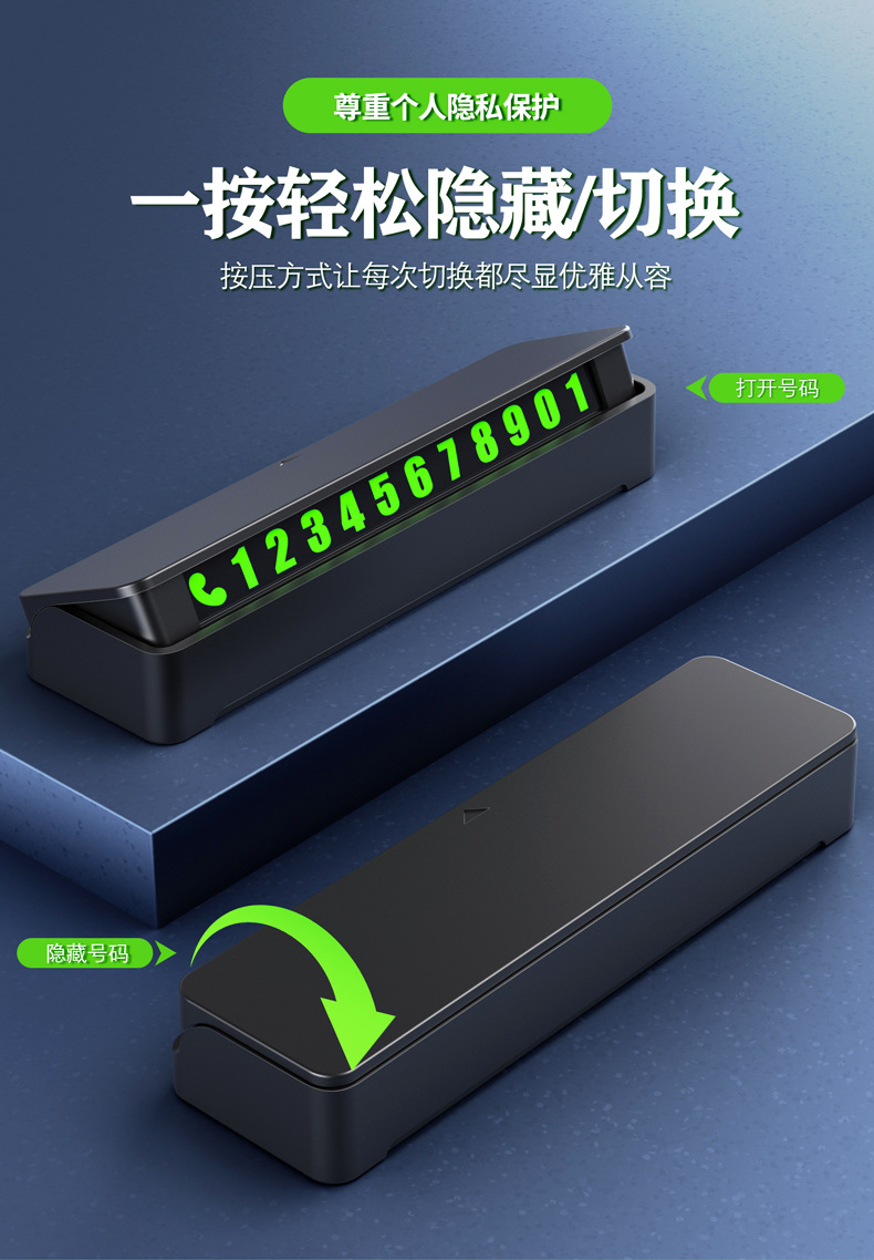 挪车电话牌车内用临时停车号码牌一键隐藏式铝合金材质车载移车牌