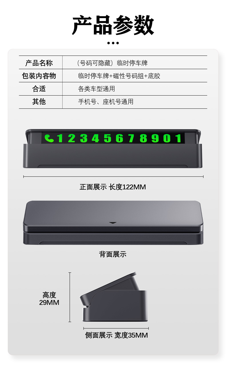 汽车临时停车牌车载磁吸号码牌挪车停车可隐藏电话牌DIY夜光车用