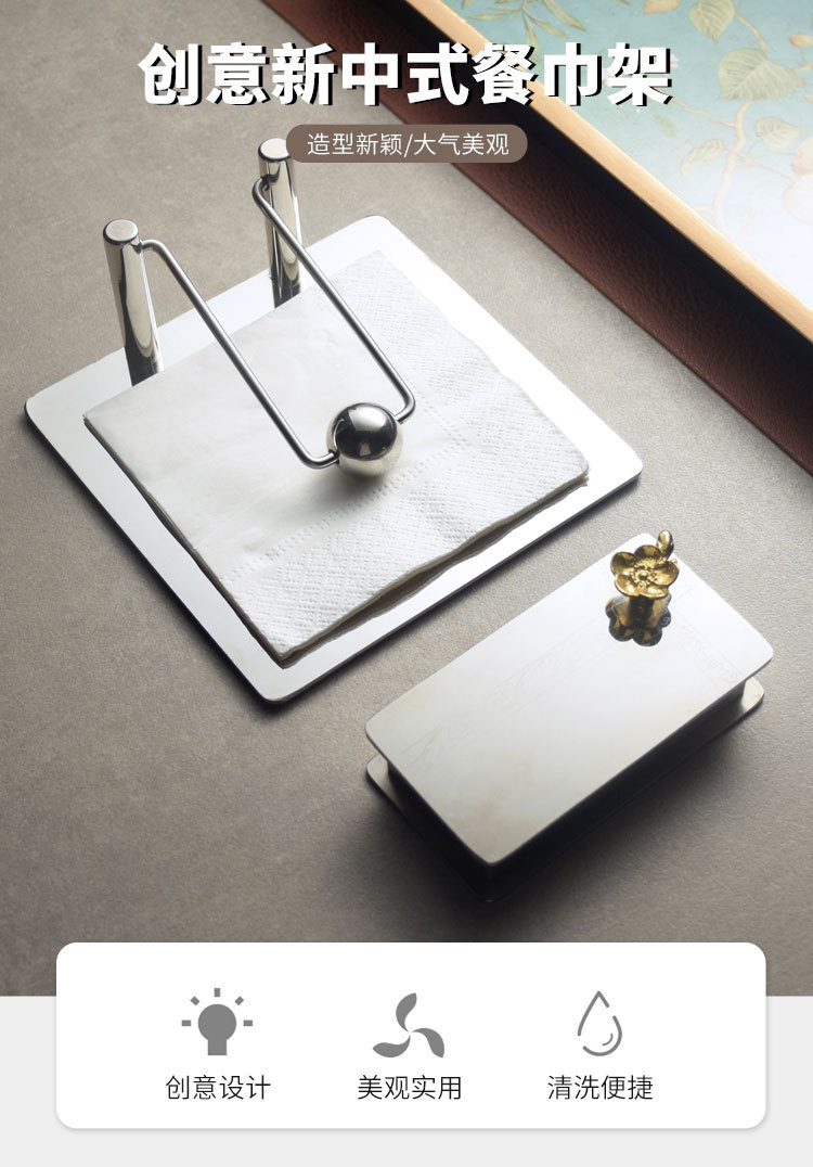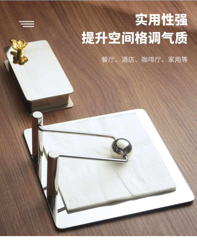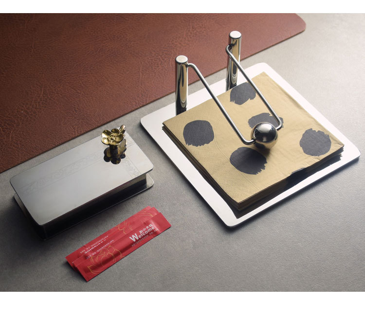 軽くて豪華なアメリカのステンレスの定点のティッシュの席の取っ手のナプキンの棚の方のタオルの棚のホテルのレストランのテーブルのティッシュの席