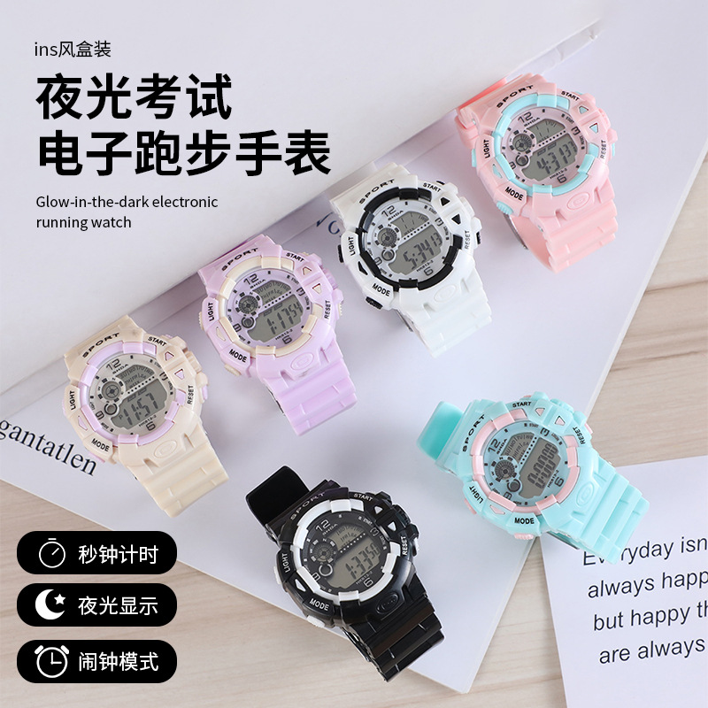 箱入り夜光試験カウントダウン腕時計、インスタ映えする若者向け男女兼用電子腕時計、ランニングウォッチ、多機能