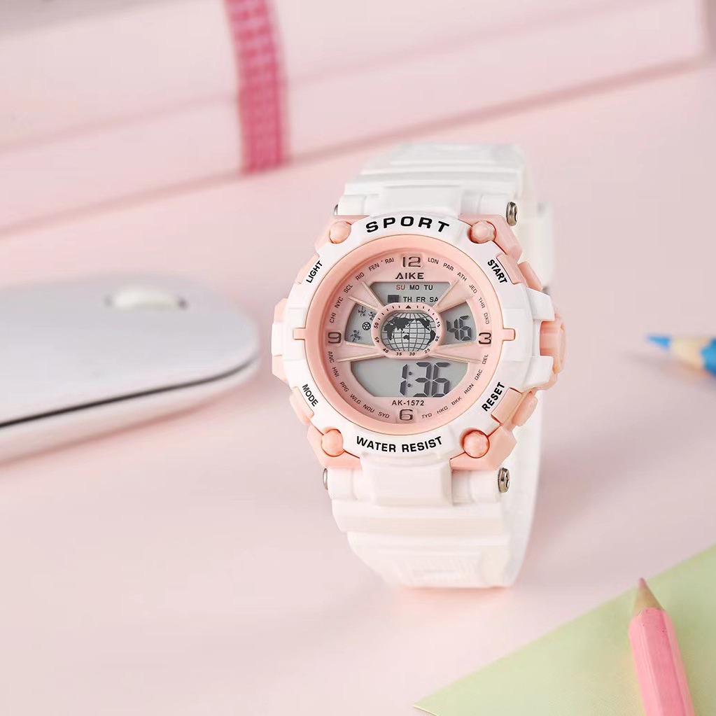 AIKE1572 スポーツ風腕時計 男女兼用 夜光電子時計 学生用防水時計 卸売 アイケ透明独立ボックス