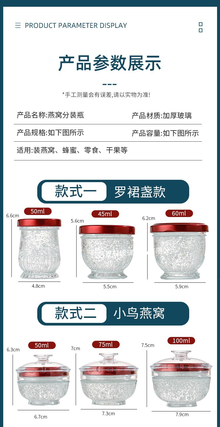批发可印logo燕窝分装瓶鱼胶可蒸煮玻璃瓶食品级耐高温密封瓶现货