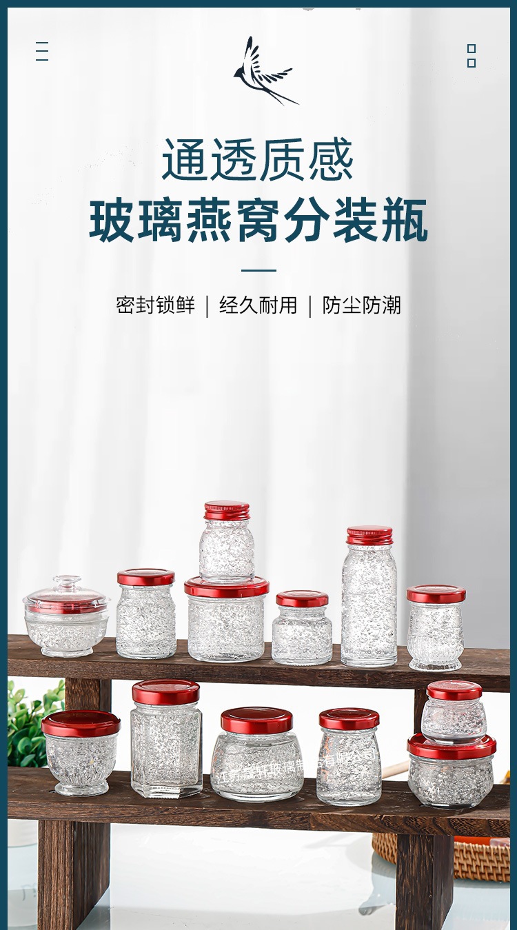 卸売りのツバメの巣の分注の瓶は新鮮な煮物を煮て空の瓶の家庭用高温のガラス瓶の食品級の密封の小さい缶を煮ることができます。