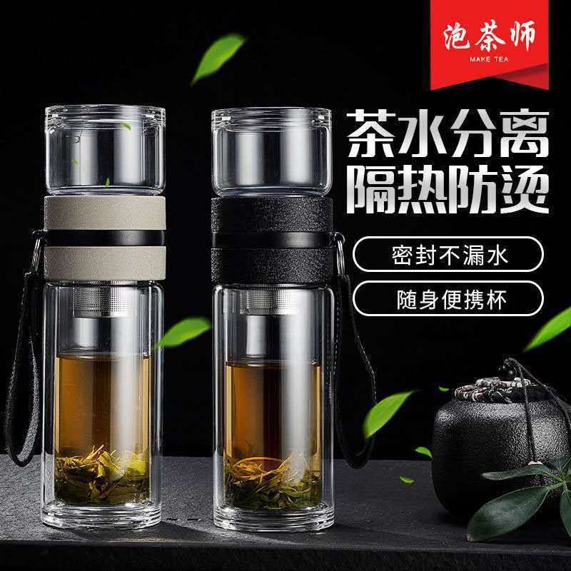 メーカー卸売り高ホウ素シリコン二重ガラス茶水分離カップ泡茶カップクリエイティブネット赤カップギフトカップ