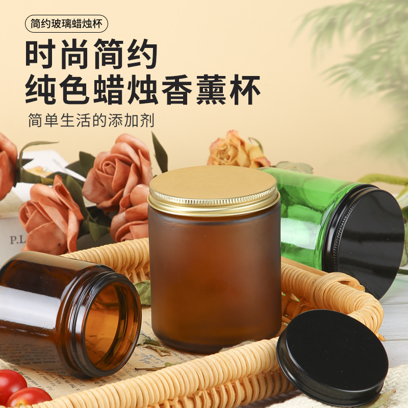 茶色の蒙砂ガラス香薫ろうそくカップ茶色の大口グラス香薫瓶ろうそくカップdiyろうそく缶