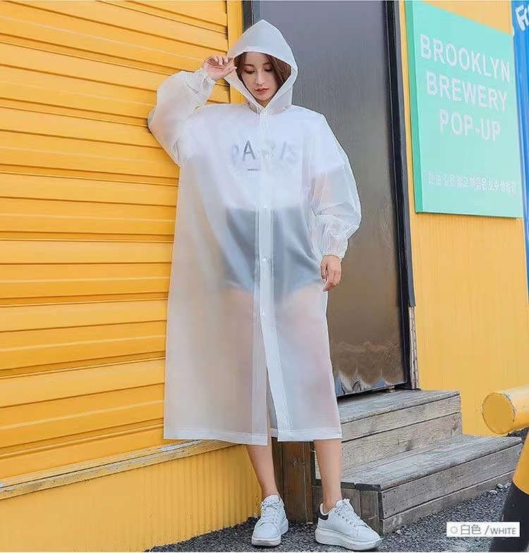 非使い捨てレインコートeva韓国版ファッションラウンドポイント半透明厚手大人レインコートロング丈可愛いレインコート