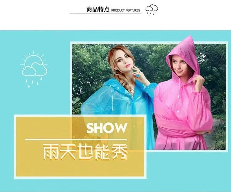 ファッションレインコートの上着は男女を厚くして、大人の携帯防水アウトドア旅行の一体通用の非使い捨てレインコートです。