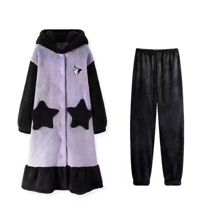 料理鼠王睡衣女冬季加厚珊瑚绒可爱搞怪睡袍连帽可外穿保暖家居服