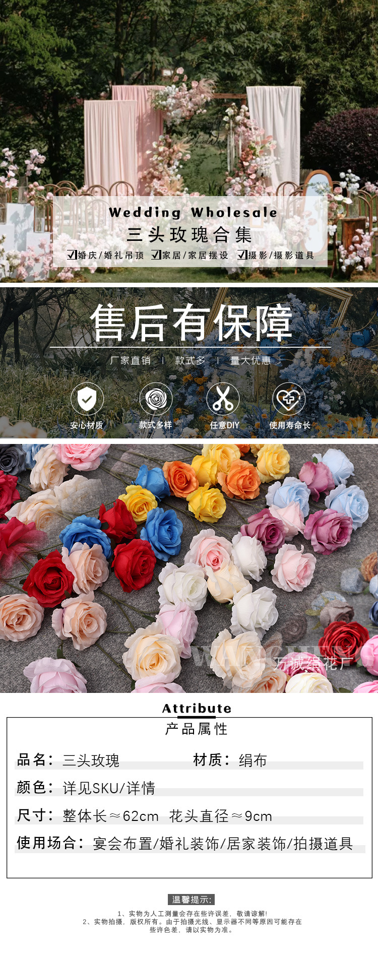 模造花多頭薔薇一本花束アマゾン結婚式装飾人工花配置道具偽花飾り