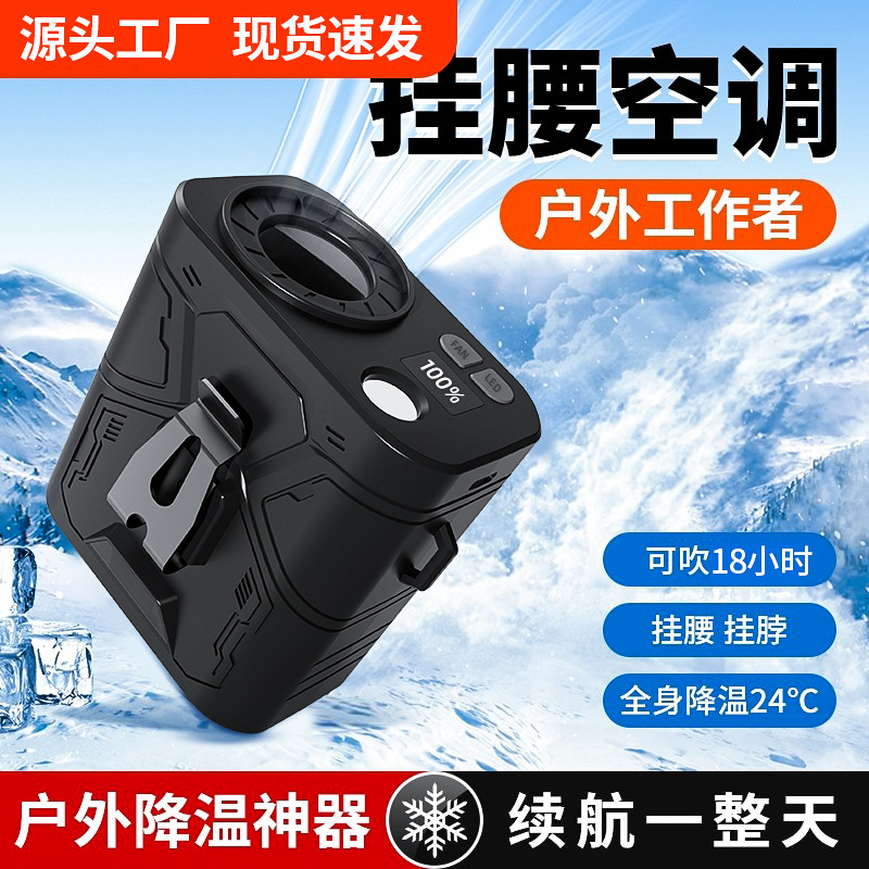 新型の越境冷凍腰掛け扇風機、屋外高温作業用、軽量で持ち運びやすく、長持ちする充電式モバイルバッテリー、越境で人気商品