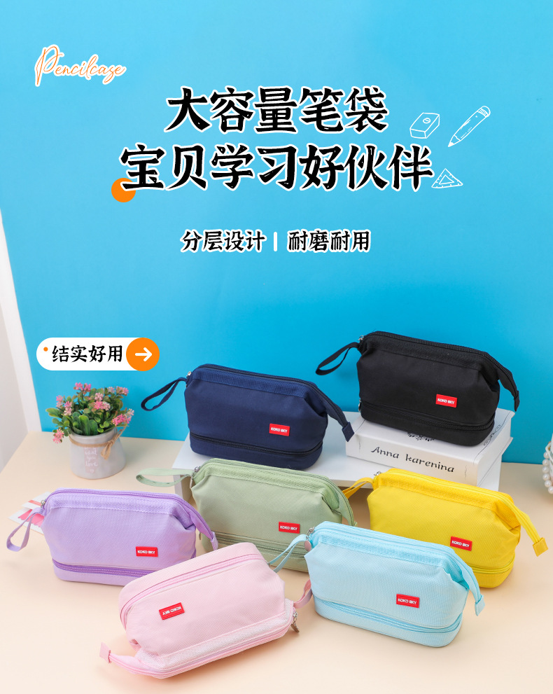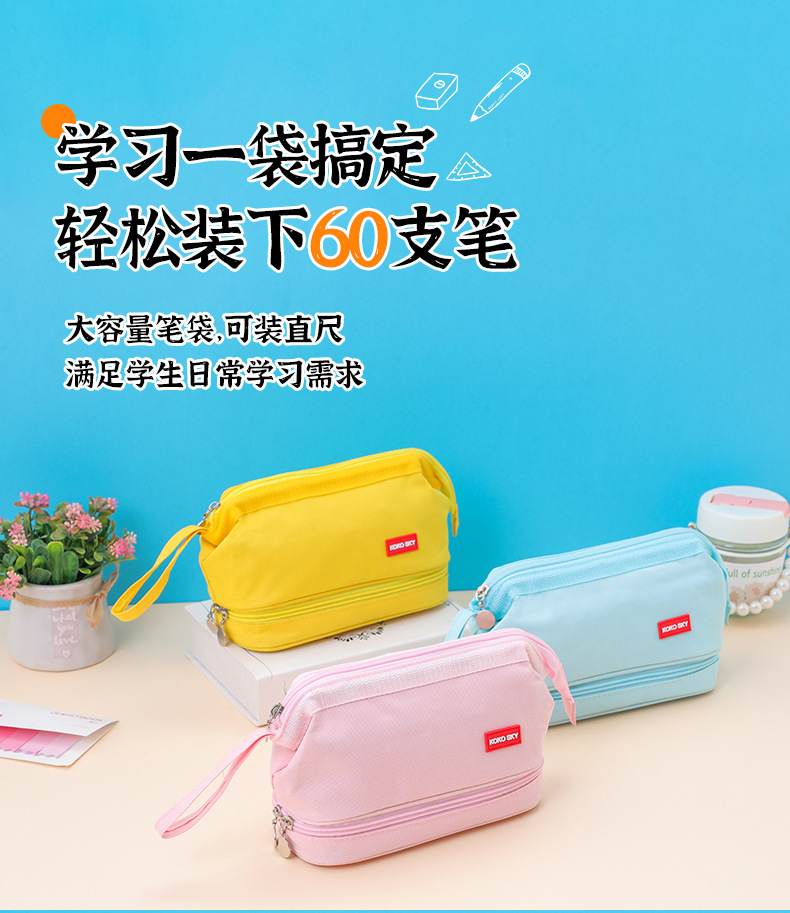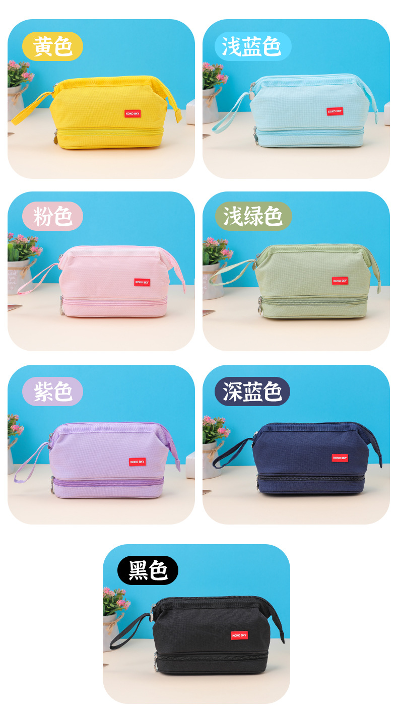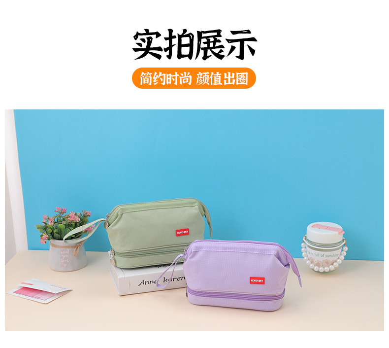 韓国版高颜値筆袋大容量中学生文房具箱クロスボーダー二重帆布シンプル純色文房具袋