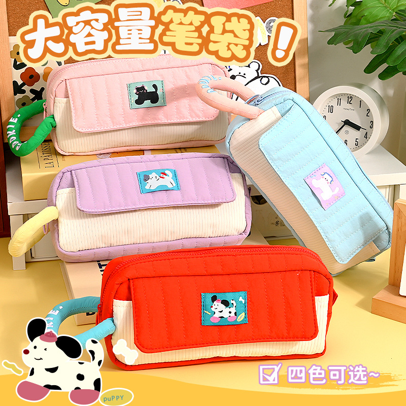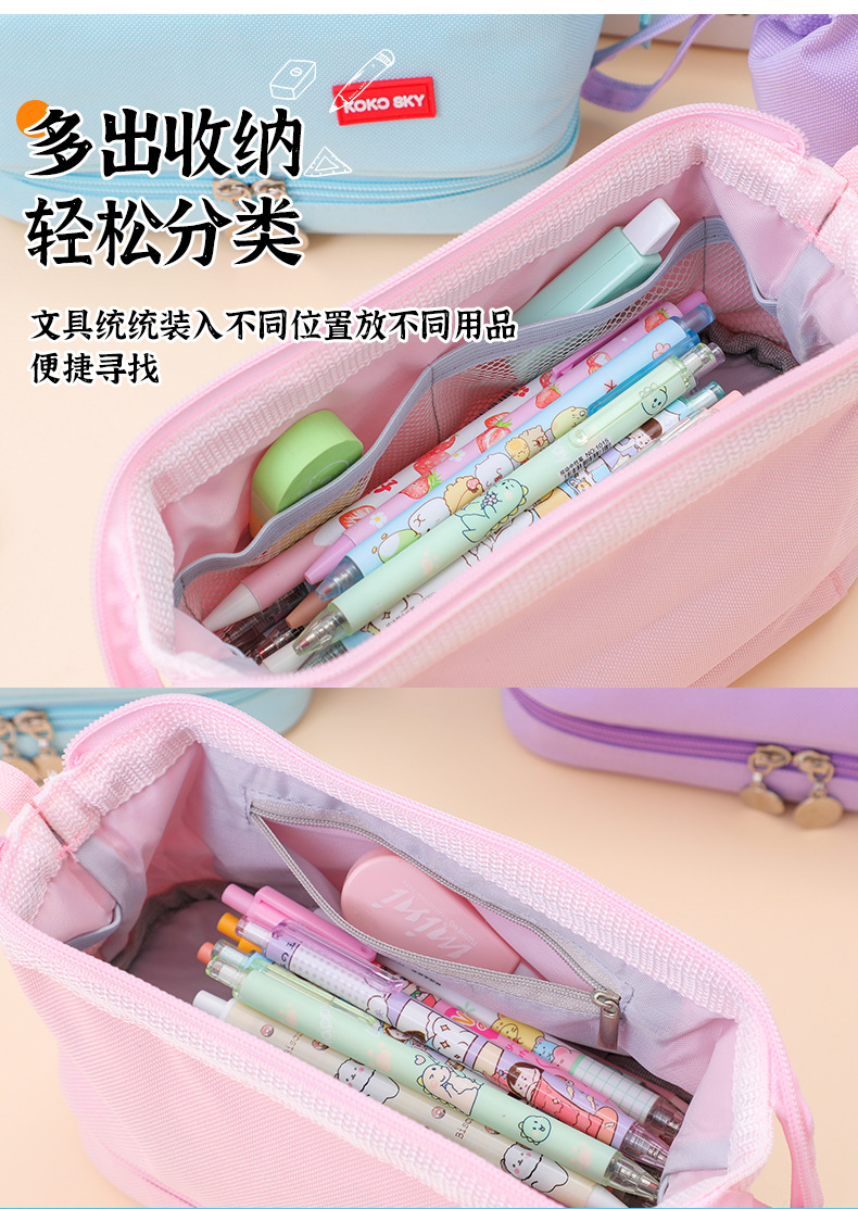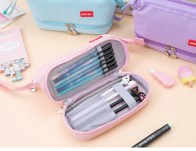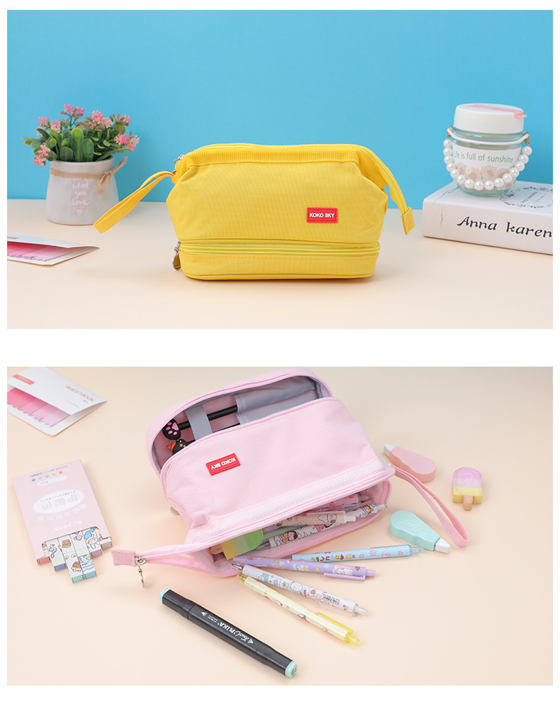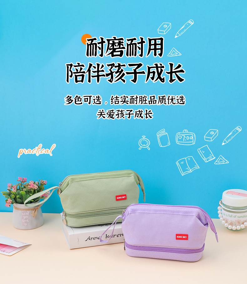 韓国版高颜値筆袋大容量中学生文房具箱クロスボーダー二重帆布シンプル純色文房具袋