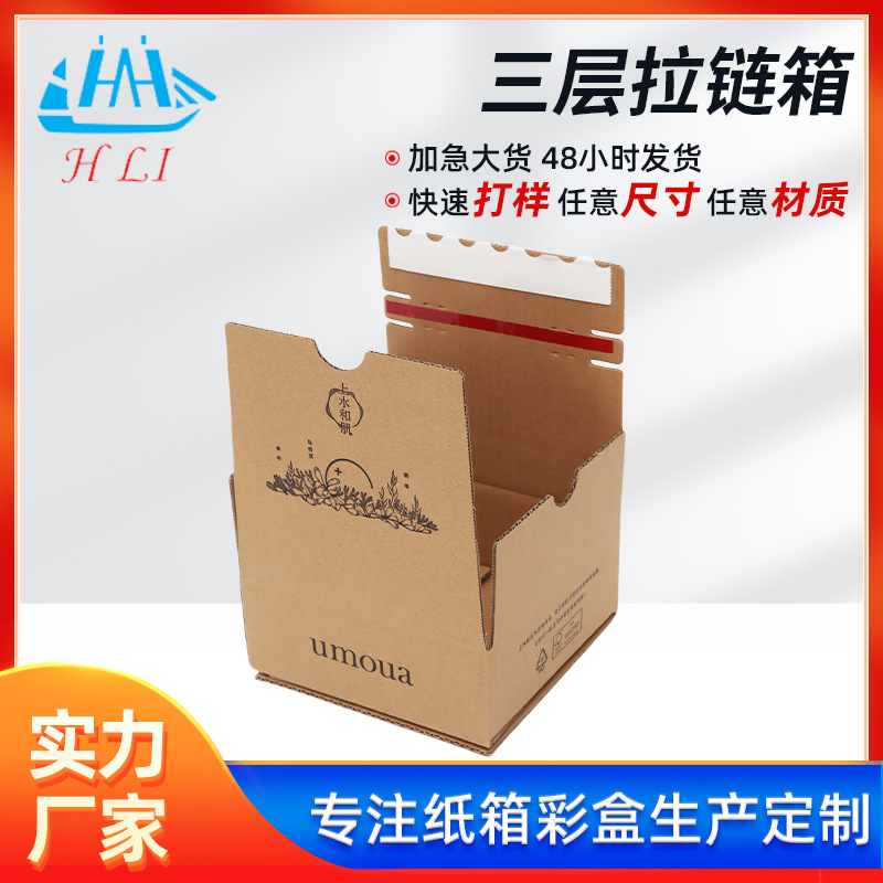 ジッパー付きカートン3層段ボールカラー引き裂きやすいジッパー付きカートン化粧品宅配便テープなし引き裂きやすいジッパーボックス