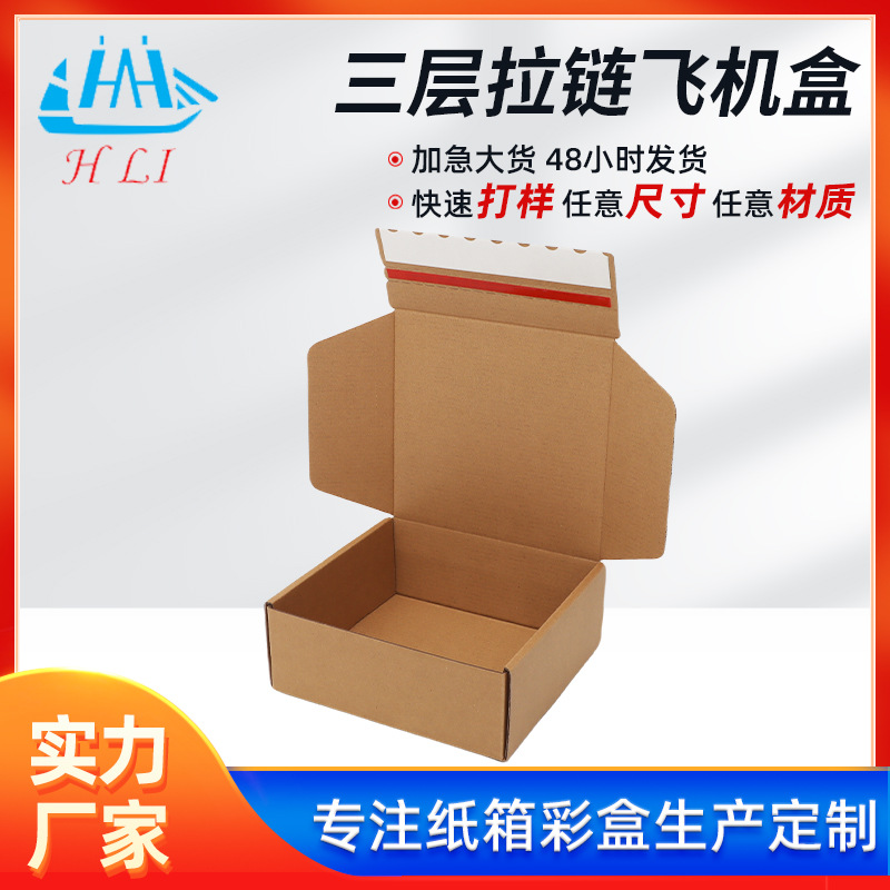 カスタマイズされた三層ジッパー航空機ボックス、非常に硬いジッパー付きカートン、テープフリーの電子商取引包装エクスプレスカートン、ジッパーカートン