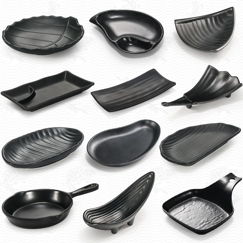 黒色の軽食の皿の創意の食器の商用の日本式のバーは火の鍋の店のメラミンのおかずの冷たい料理の皿のプラスチックを焼きます