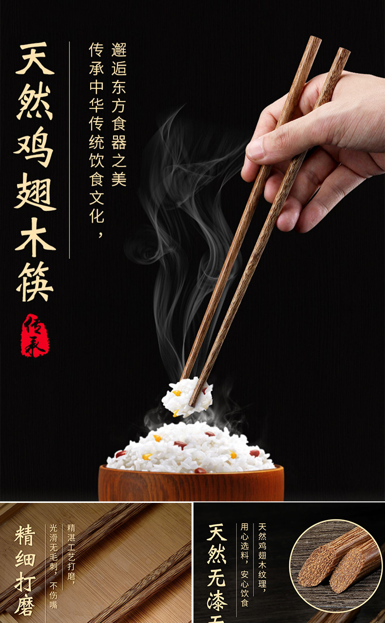手羽木箸10足家庭用高級実木滑り止め防かび耐高温木製快子家庭新卸売り