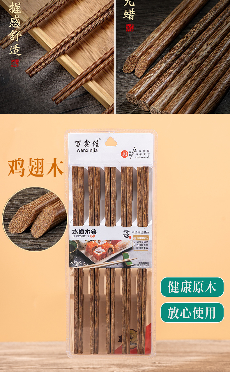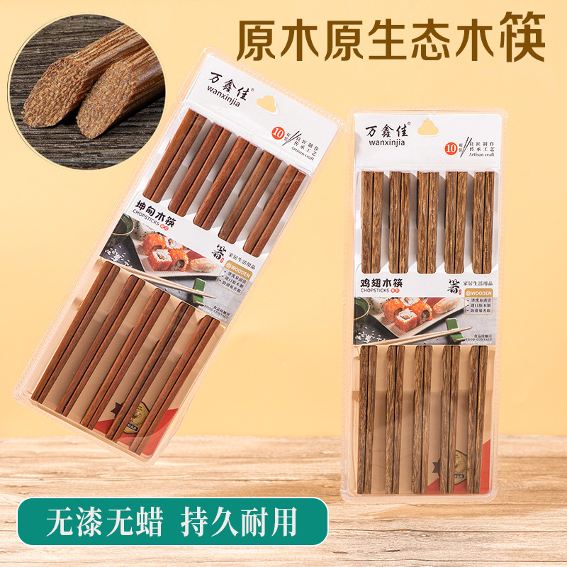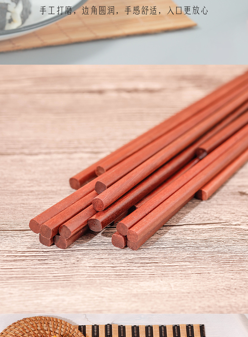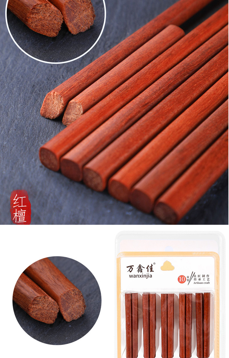 万鑫佳家は木の箸で10足の赤い檀木の鶏の羽の黄檀の坤の重い木の箸の実益の箸の卸売りを作ります。