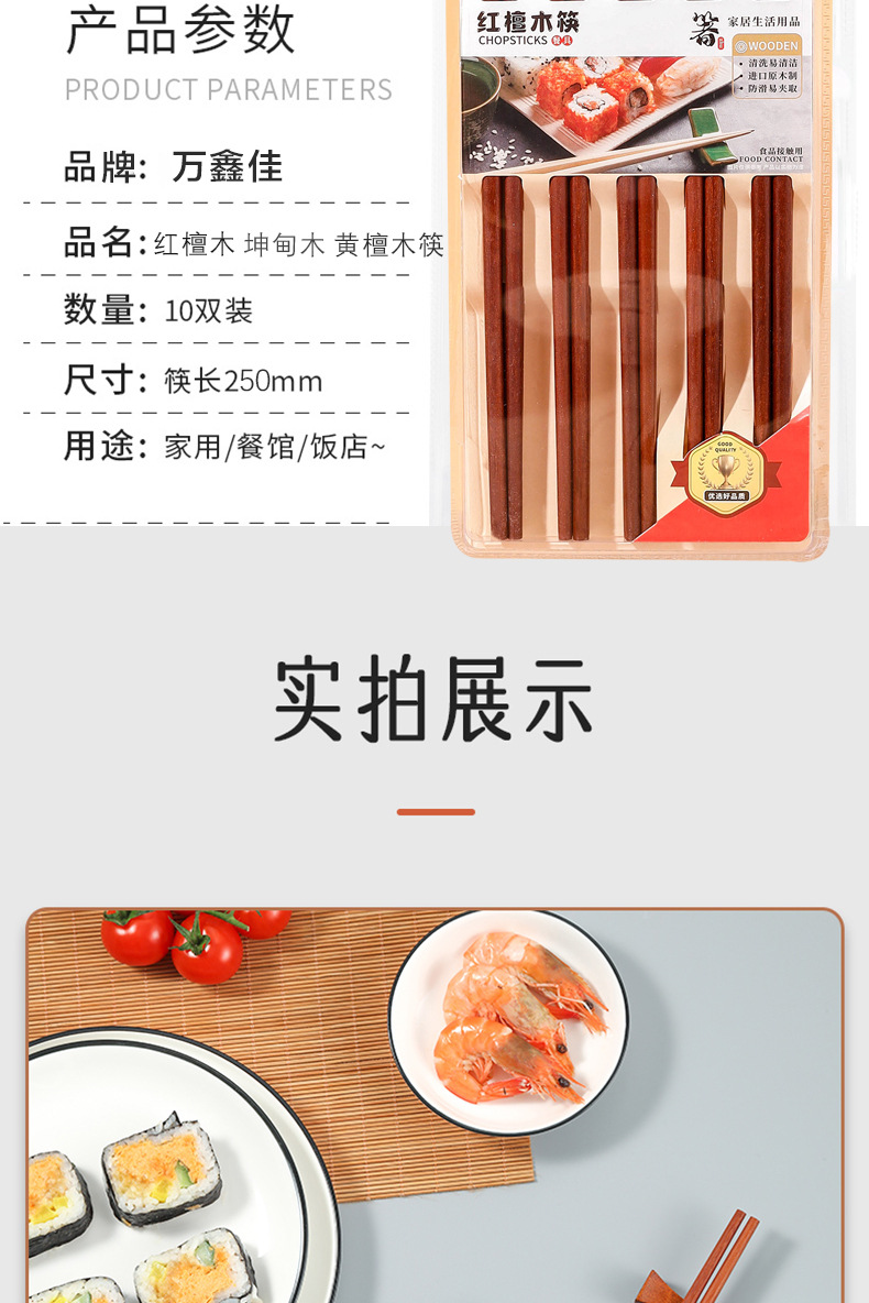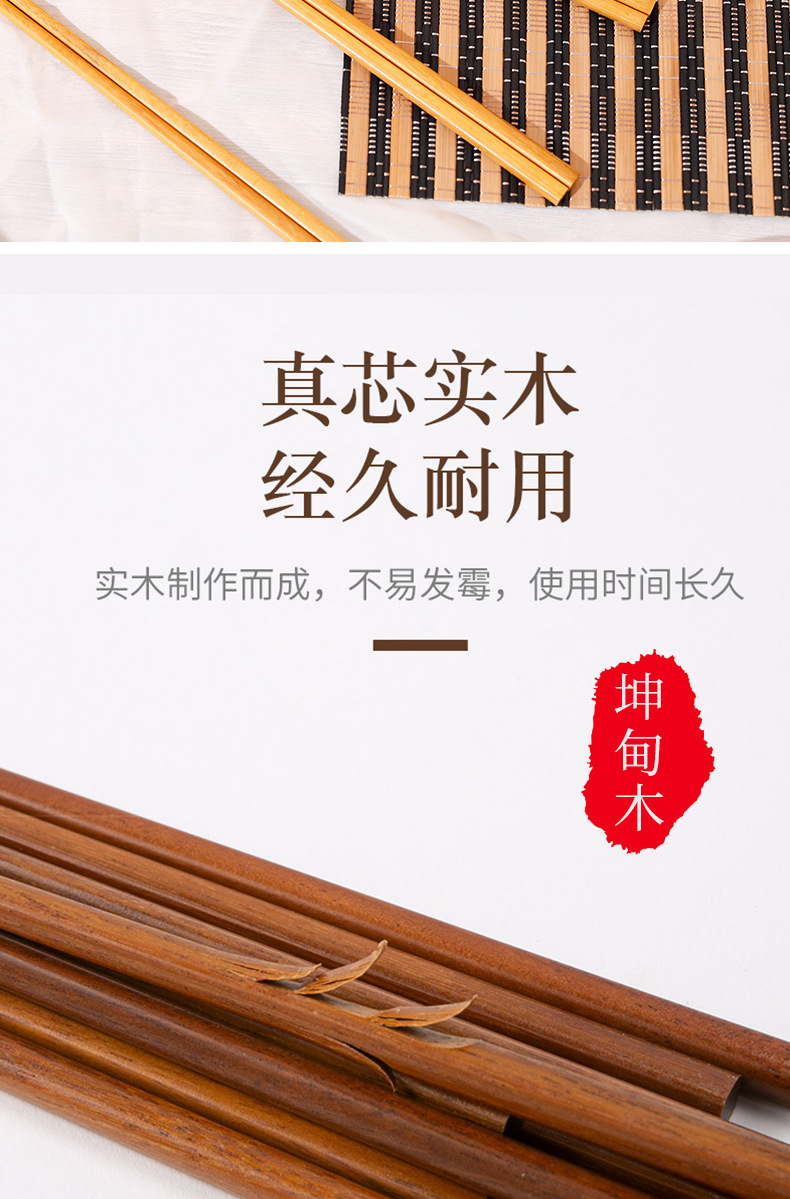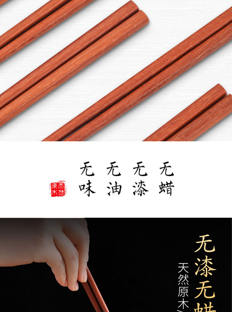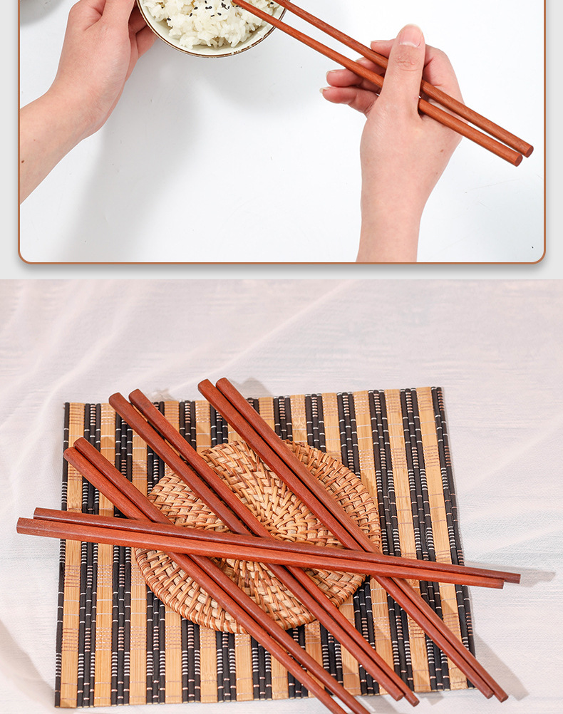 万鑫佳家は木の箸で10足の赤い檀木の鶏の羽の黄檀の坤の重い木の箸の実益の箸の卸売りを作ります。