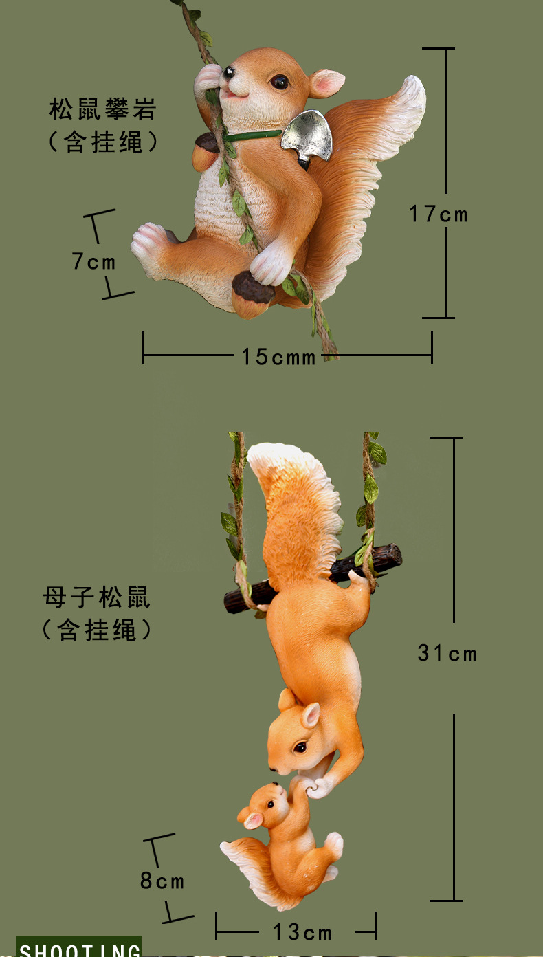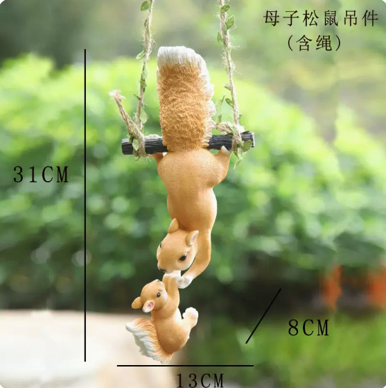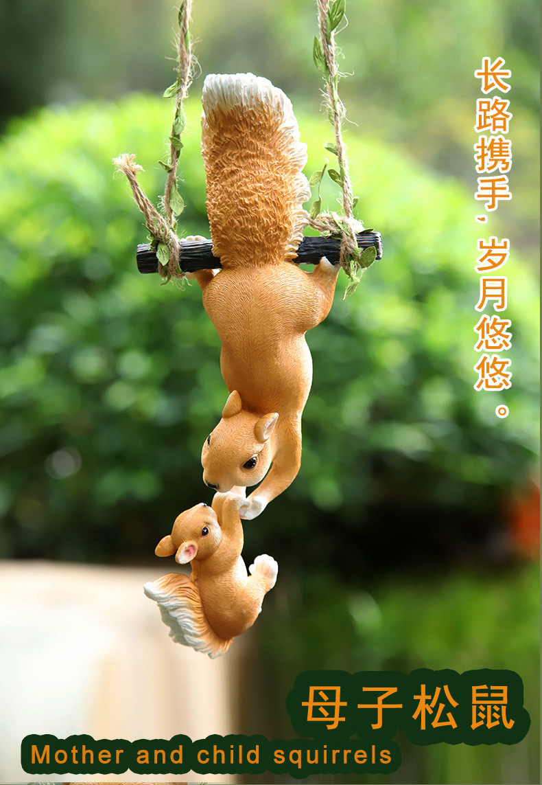 国境を越えた模擬リスペンダント屋外中庭装飾品樹脂工芸品庭のコミュニティ庭の景観装飾