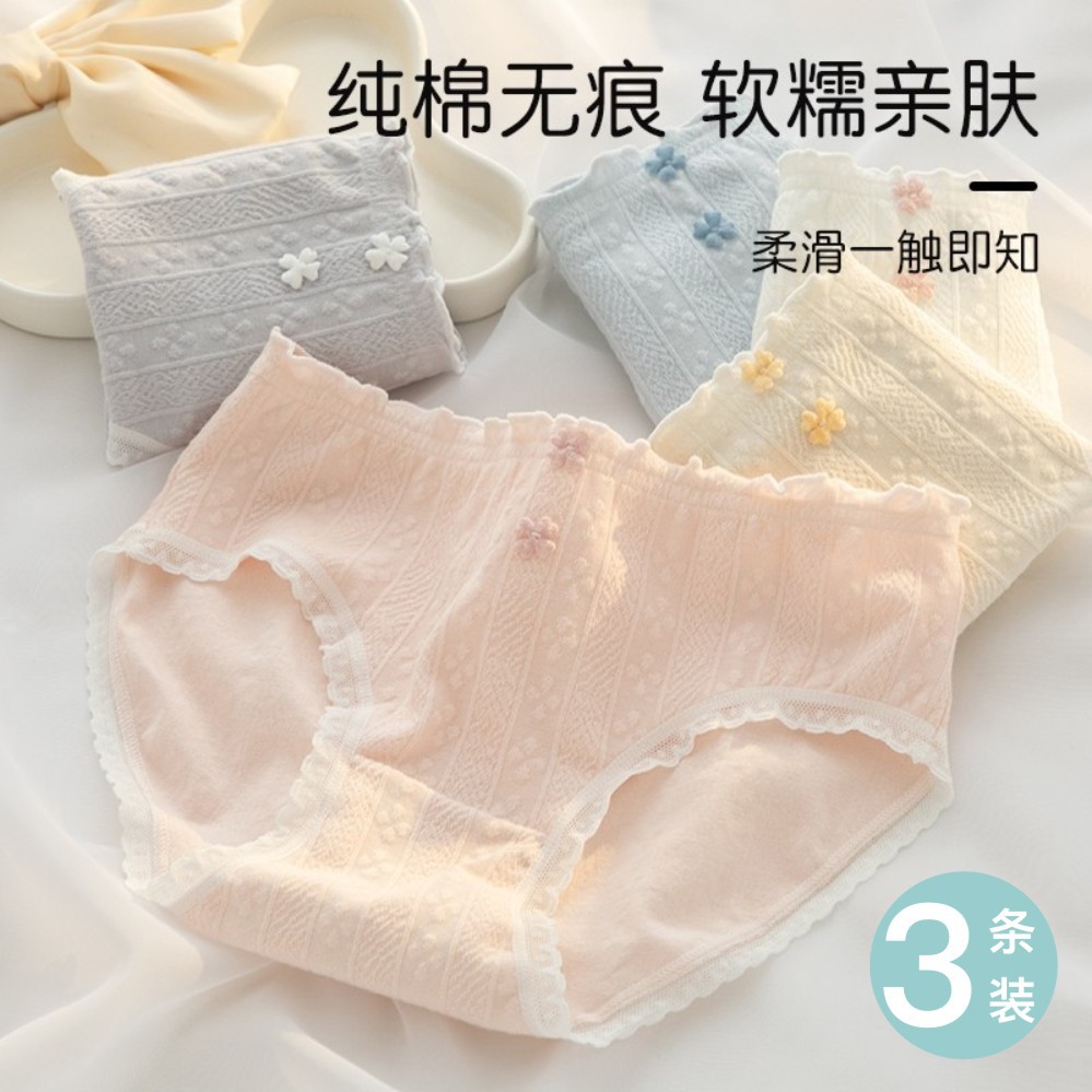 【3条装】纯棉内裤女生新款全棉抗菌裆透气中腰甜美可爱三角