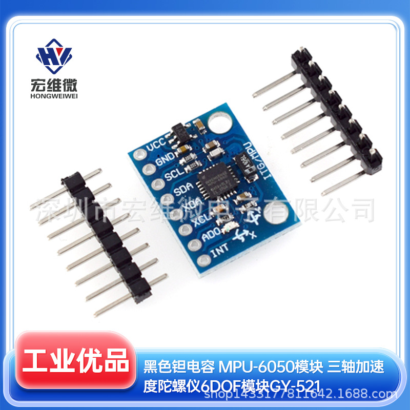 黒タンタルコンデンサ MPU-6050 モジュール 3 軸加速度ジャイロスコープ 6DOF モジュール GY-521 ピンヘッダー付き