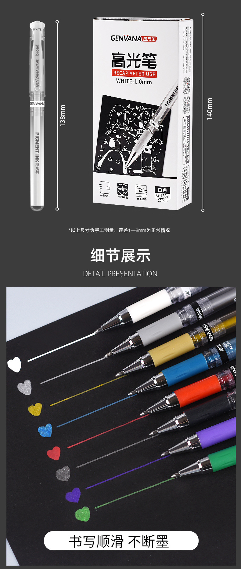 1.0ゴールド、シルバー、ホワイトの手描きハイライトペン、アート専用ハンドブックペン、落書きペン、線画ペン、ゲルペン