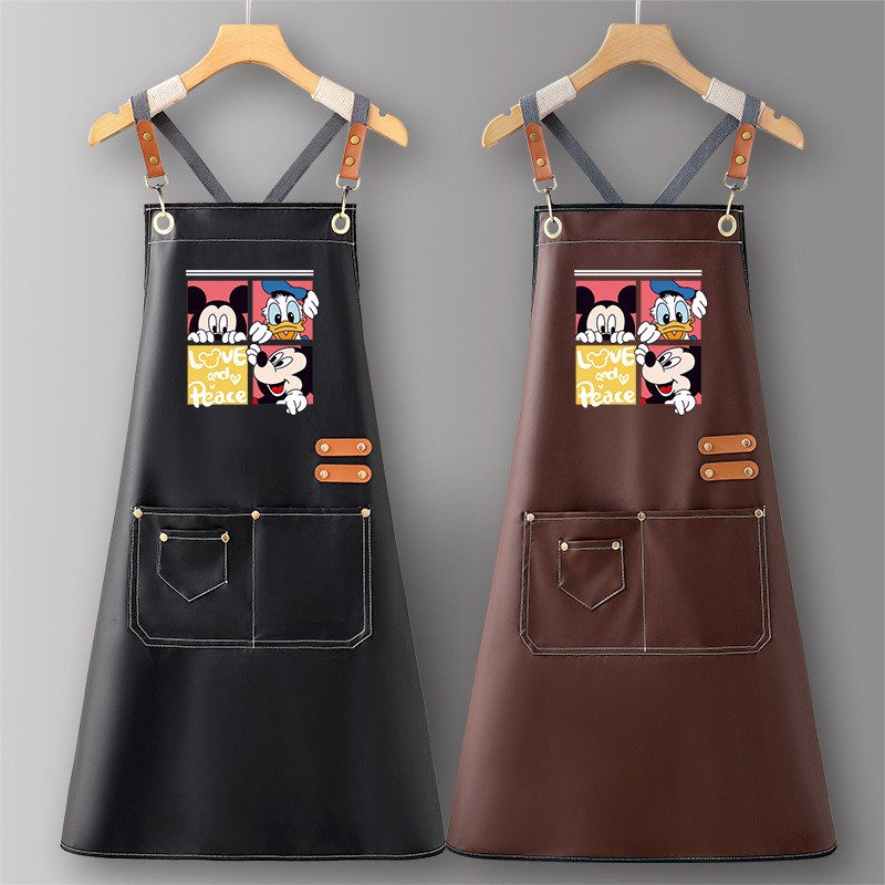 クロスストラップPUレザーポケット付きエプロン、防油防水、人気の料理用キッチン家庭用2025年新作作業服メンズ