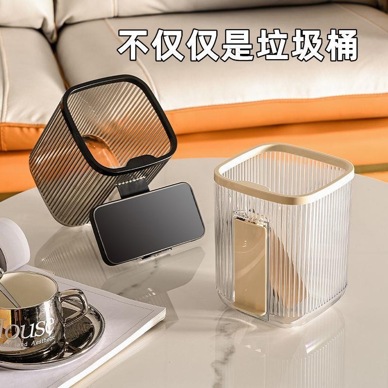 デスクトップゴミ箱携帯電話スタンド付き蓋なし小型ミニ紙かご透明大容量軽量小型ゴミ箱