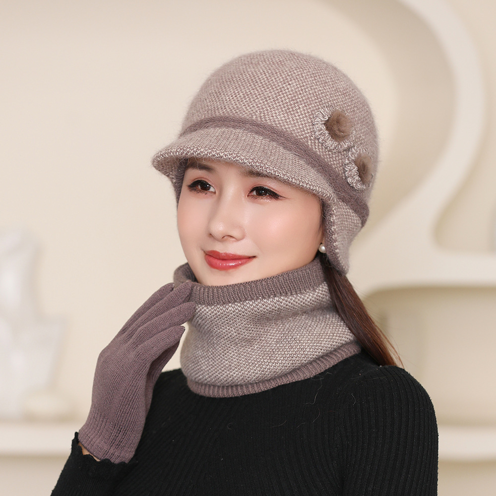 韓国版冬のお母さんのニット帽とベルベットの厚い中高年ウサギの帽子の女性の保温帽子のマフラーの2つのセット