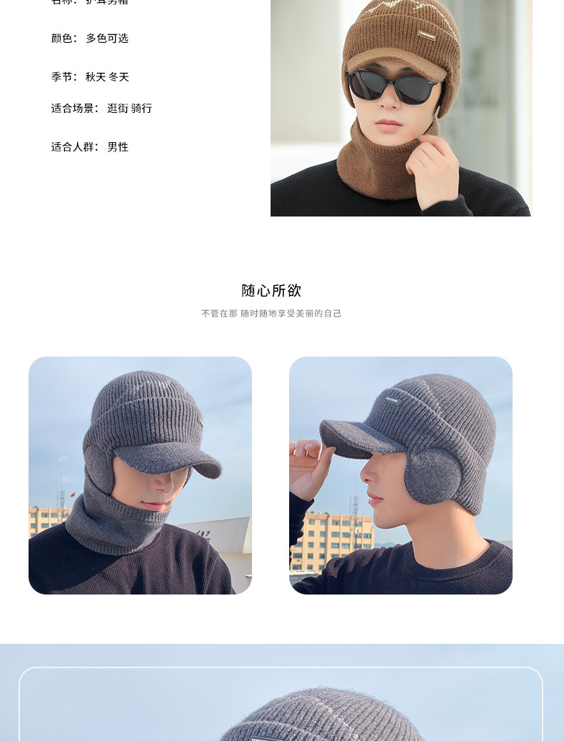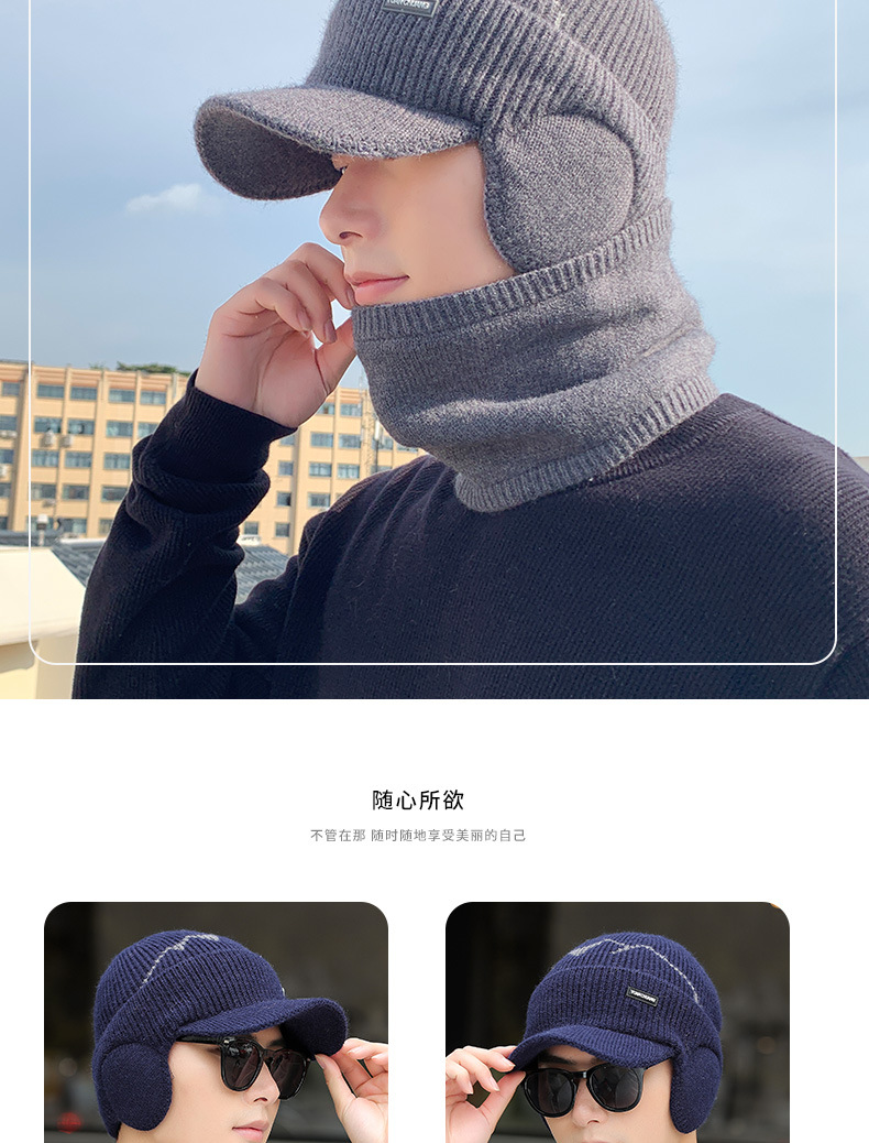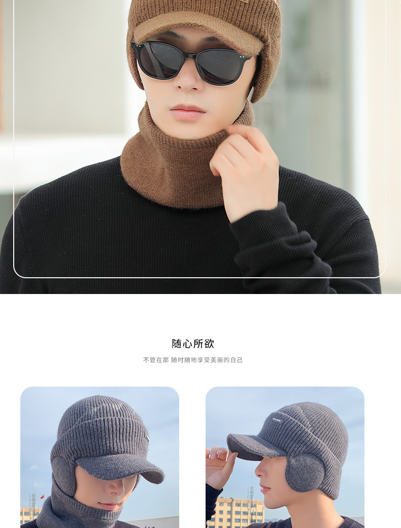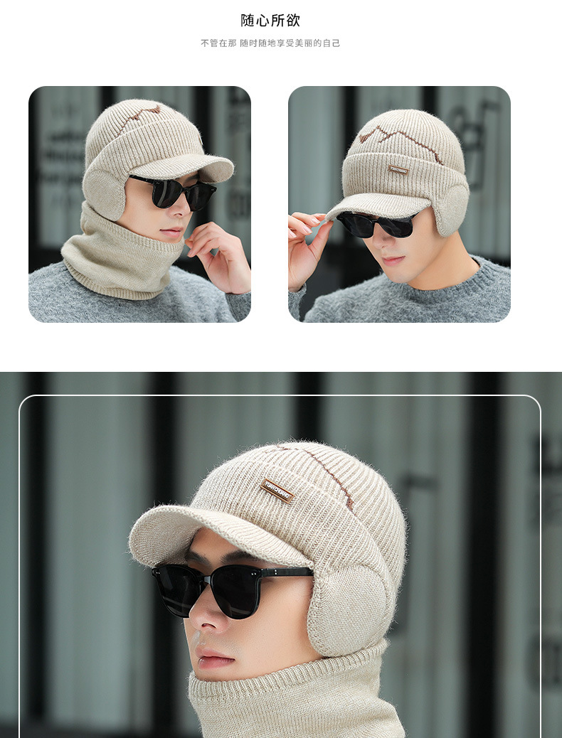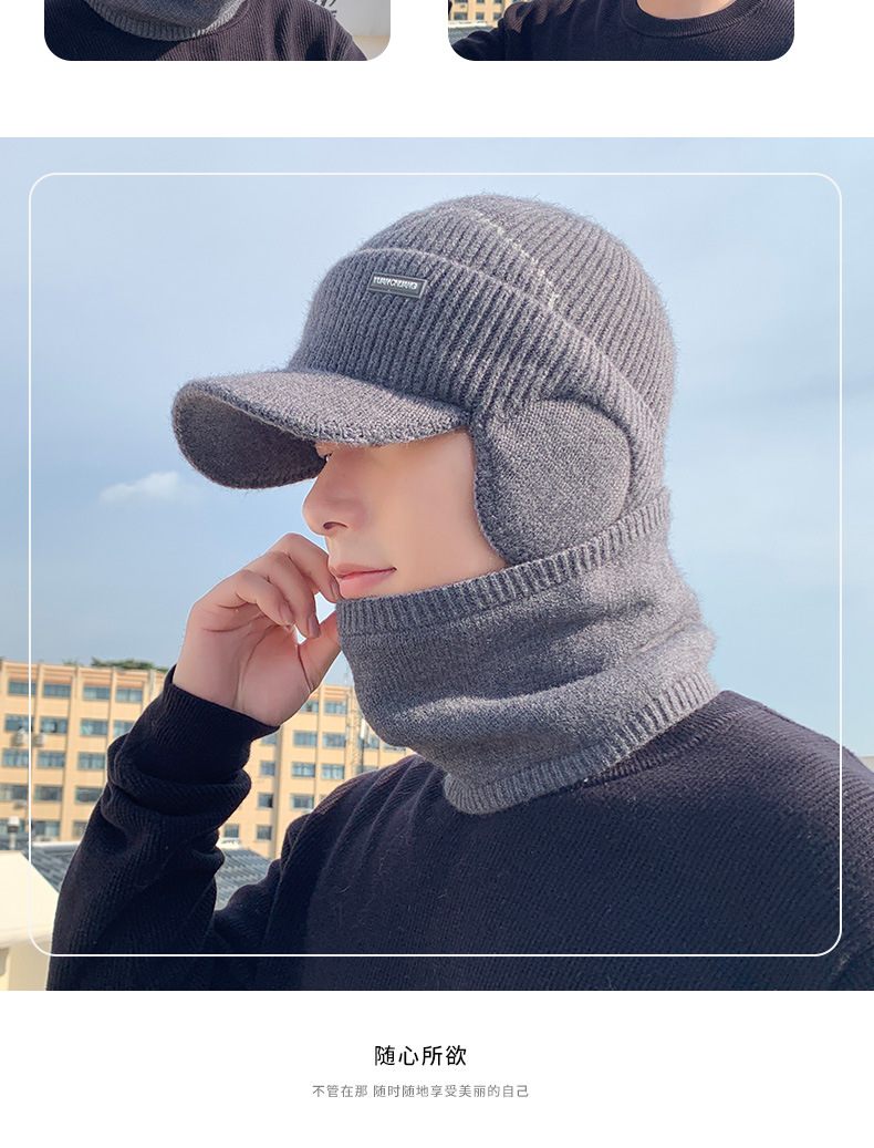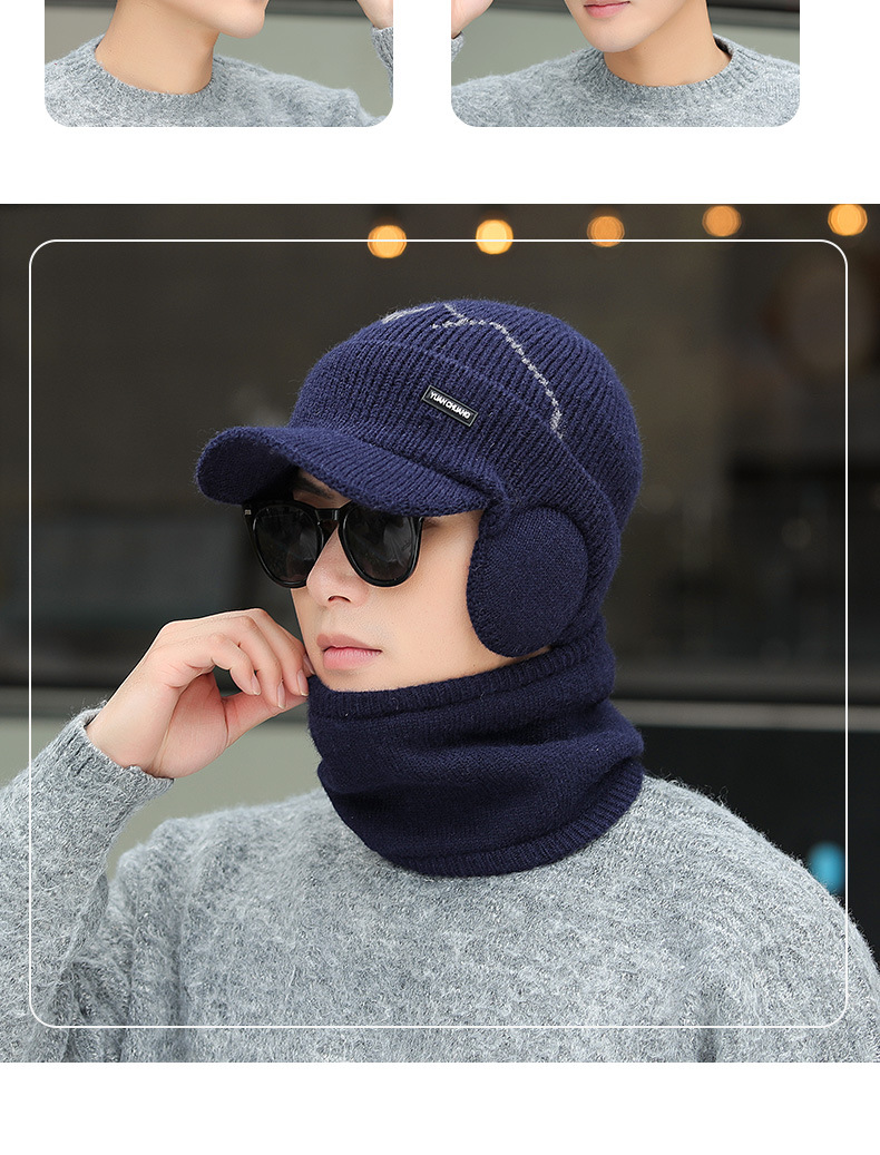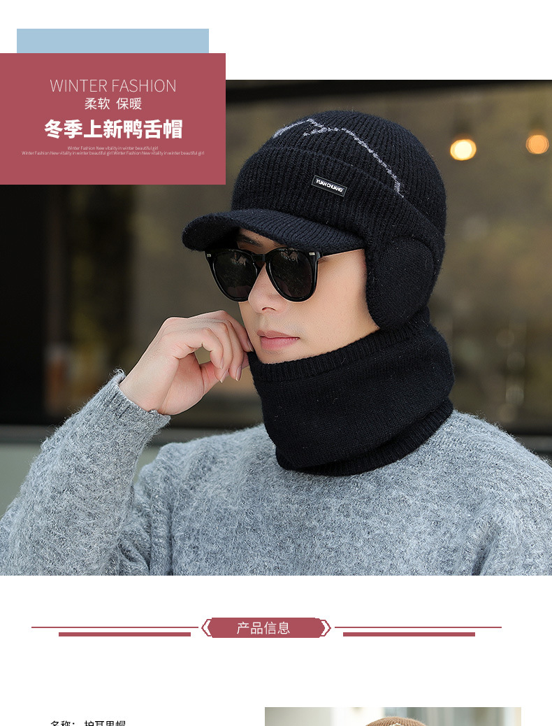 新型アルファベットhベルベット保温ニット鴨舌帽子男性防風寒マフラー秋冬自転車青年帽
