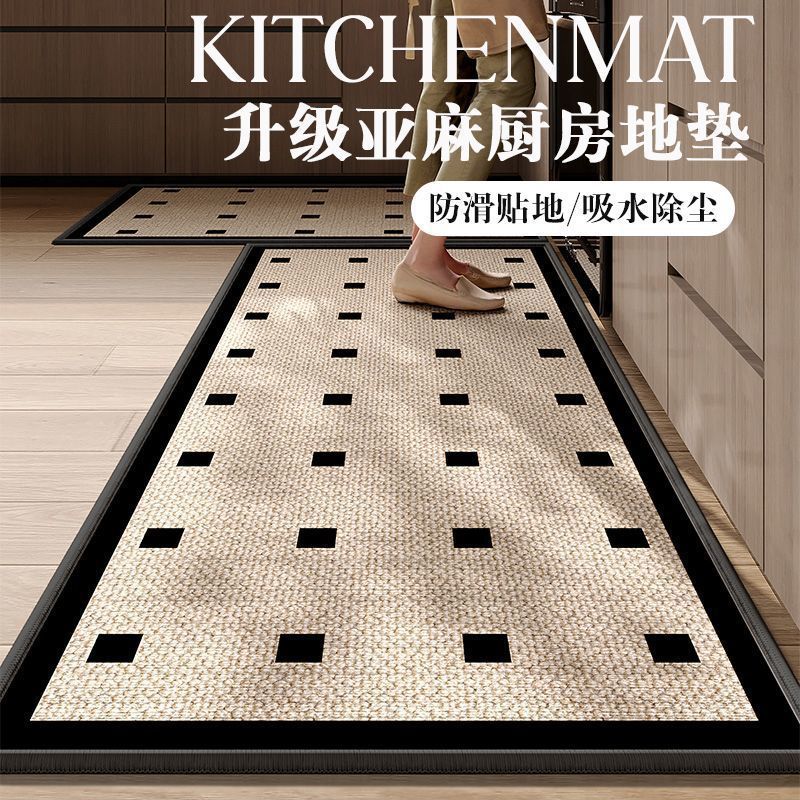 简约厨房地垫亚麻硅藻泥吸水吸油地垫厨房必备防滑防摔耐脏脚垫